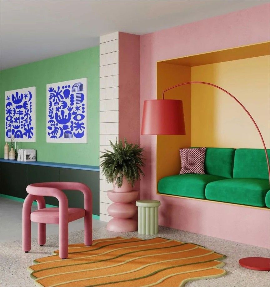 As tendências dos anos 80 voltam à decoração em 2026 trazendo de volta tons neon, pastel e cores vibrantes em pequenas doses.