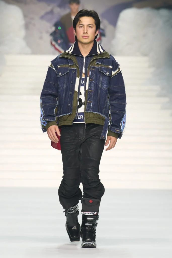 Dean e Dan Caten apostaram em jeans desconstruído, japonas acolchoadas, leggings justas e casacos com pelos exagerados. Fiel ao seu estilo ousado, jovem e provocativo, a dupla entregou uma coleção barulhenta, divertida e autêntica.