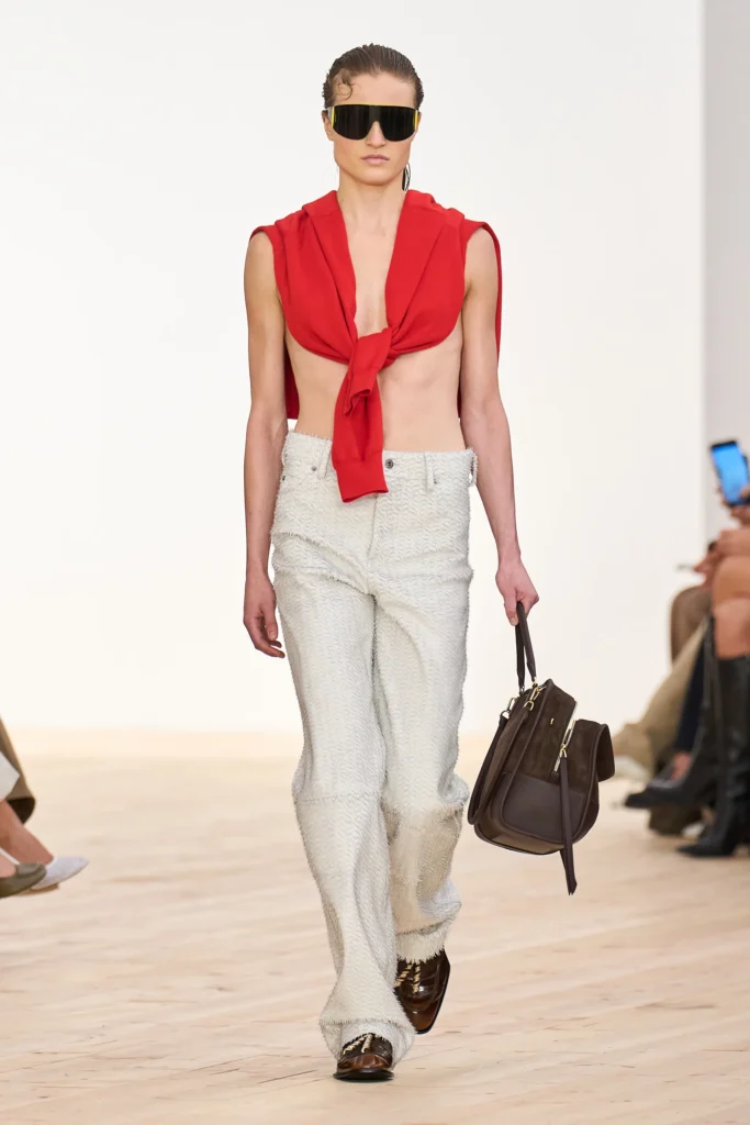 Jack McCollough e Lazaro Hernandez, ex-Proenza Schouler, fizeram sua estreia na Loewe, a segunda marca de luxo mais antiga do mundo, e abriram o dia de desfiles com uma coleção colorida e leve, cheia de energia having fun. A graça estava justamente nessa simplicidade aparente: um frescor bem-humorado que deu novo fôlego à maison.