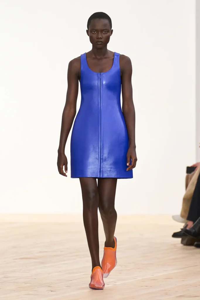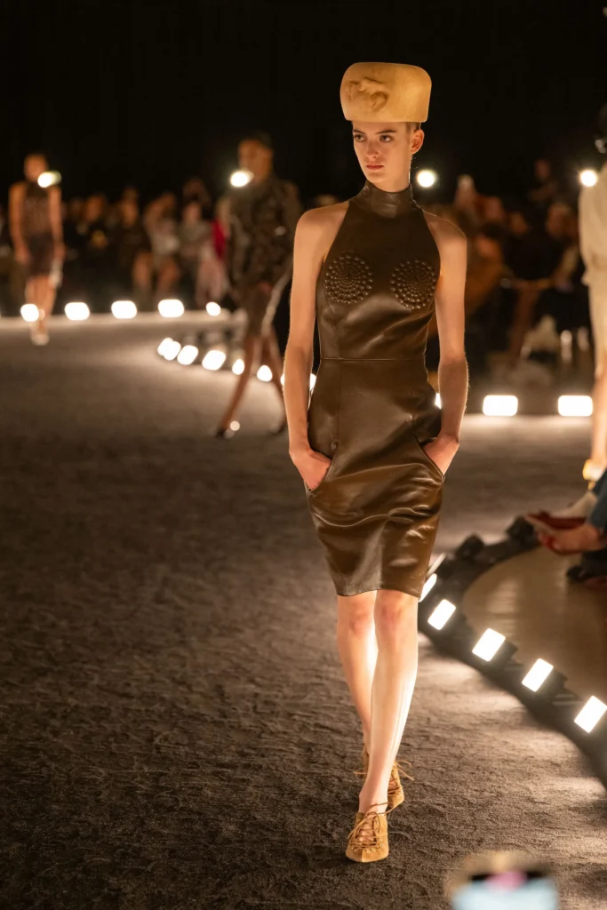 Entre os destaques, peças de couro moldadas como roupas de boneca, em tom lúdico; texturas modernas que quebravam o minimalismo do dia a dia; saias de franja, vestidos com camadas de tecido, estilo mil-folhas, casacos oversized, um aceno tímido ao sportwear e construções geométricas e assimétricas que dialogavam de forma harmônica.