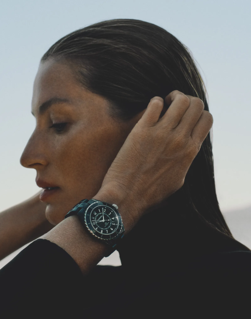 O fato de que Chanel J12 lança campanha com Gisele Bündchen neste momento indica uma consolidação. O relógio continua atual porque se adapta sem perder essência. Força e suavidade. Permanência e mudança. Liberdade e estrutura.