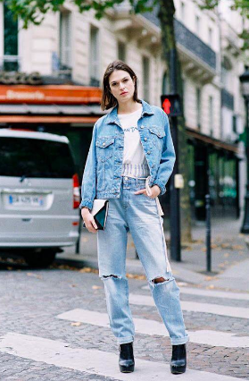 Hoje estamos vendo novamente o macacão jeans de volta às ruas, e por que não combinar ele com uma camiseta estampada ou até um cropped ombro a ombro? No verão esse combo é ótimo!!