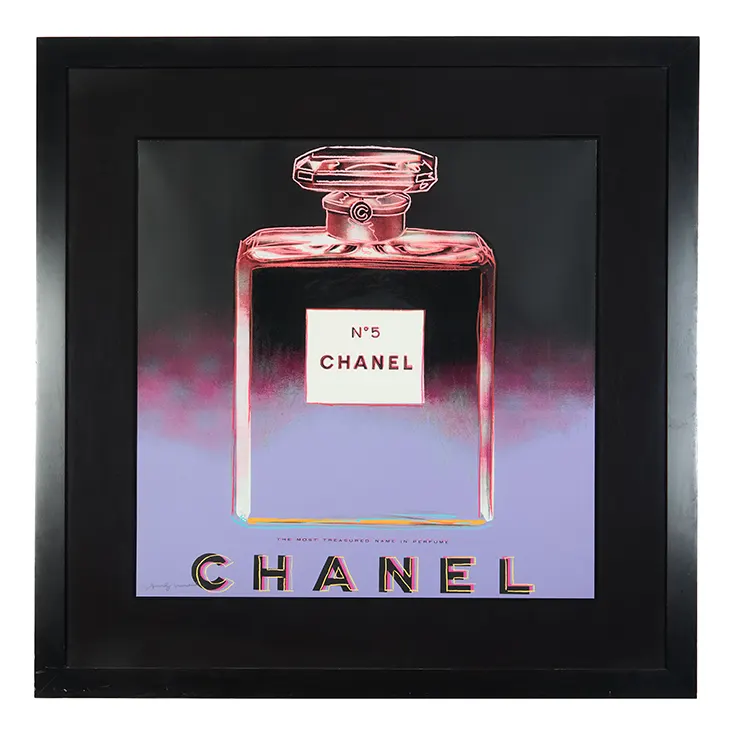 Entre os destaques do leilão estão obras que ancoram o valor simbólico da coleção. Andy Warhol aparece com “Chanel”, de 1985, peça que foi presenteada diretamente a Lagerfeld. A obra traduz o diálogo entre cultura pop e luxo, marca registrada de Warhol.
