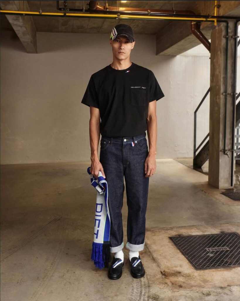 As jerseys inspiradas no ciclismo celebram o espírito de mobilidade que marcou o nascimento da marca francesa, enquanto as camisetas gráficas e os jeans com costuras inspiradas nos bancos do Peugeot 2008 trazem referências sutis ao design automotivo, transformando elementos técnicos em detalhes de estilo.