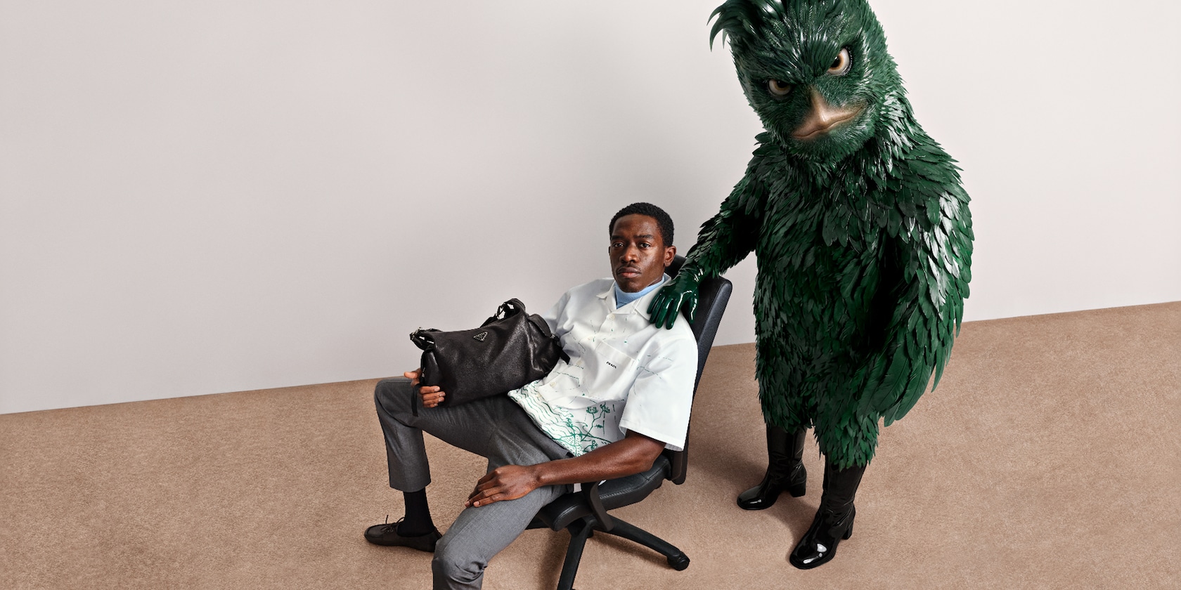 Conhecido por seu trabalho provocativo no campo da arte contemporânea, Jordan Wolfson traz para a Prada Spring Summer 2026 uma abordagem centrada na criação de universos alternativos.