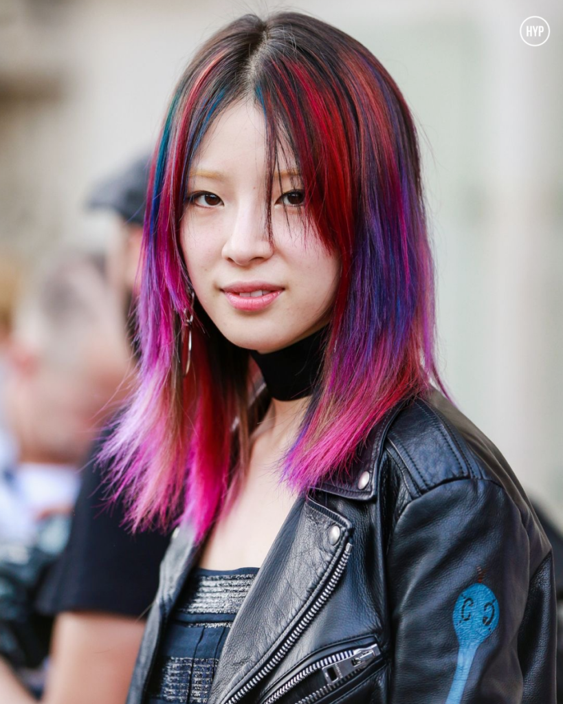 Para os mais criativos, o multicolorido aparece como a alternativa mais livre e artística. Misturando diferentes tonalidades, essa tendência permite brincar com combinações únicas, criando um visual exclusivo. Pode ser algo mais discreto, com mechas coloridas em meio ao tom natural, ou uma proposta maximalista, com cores vibrantes distribuídas por todo o cabelo. De qualquer forma, o resultado é sempre expressivo e cheio de personalidade.
