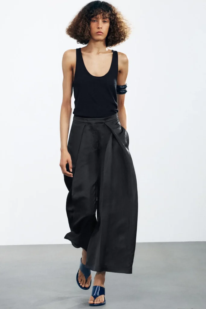 A moda tem ciclos, e nada reaparece por acaso. As culottes combinam com tudo que está rolando no momento: conforto, minimalismo, estética clean, peças versáteis e aquele visual chic sem esforço que domina o street style.