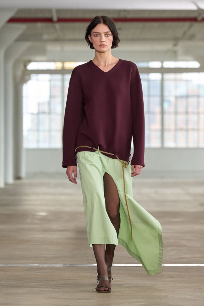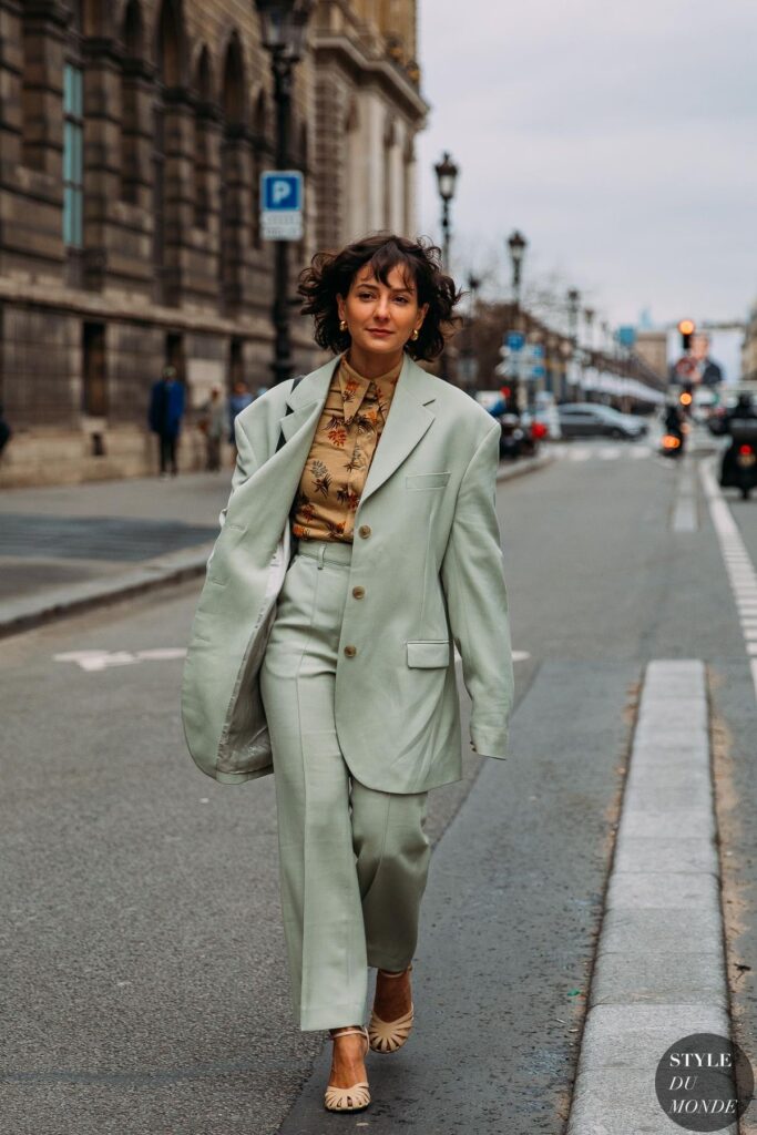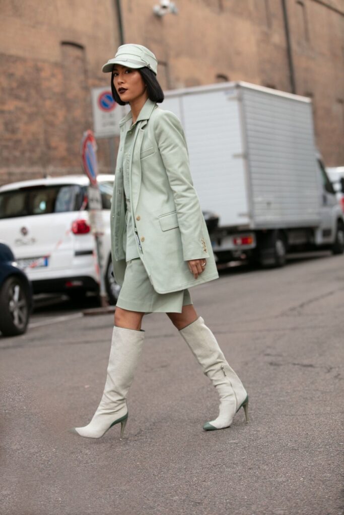 No Pinterest e no TikTok, o verde menta aparece em todo tipo de moodboard: do estilo clean girl ao Y2K repaginado. Nas ruas, é comum ver o tom em looks monocromáticos, com saias midi, calças de alfaiataria e jaquetas oversized.