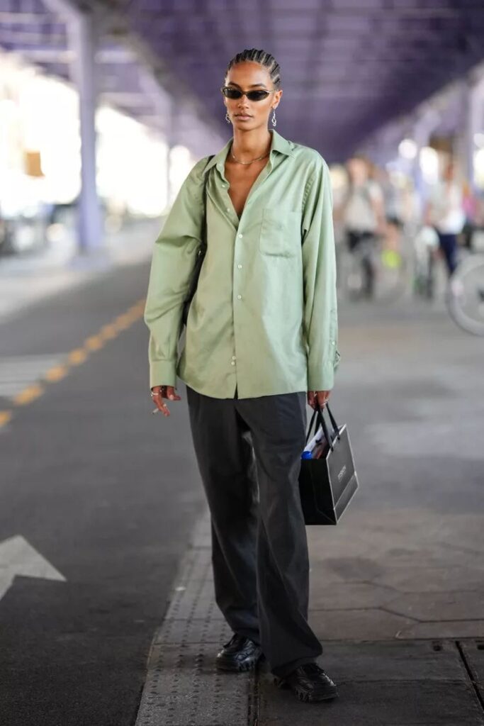 E se você quer apostar na cor sem precisar renovar o guarda-roupa inteiro, é só investir nas peças-chave certas. Uma camisa de alfaiataria verde menta, por exemplo, é curinga: vai bem com jeans, saias e calças brancas, e deixa o look com cara de “arrumada sem esforço”. Já os blazers e conjuntos nesse tom são ideais para o office look moderno — basta combinar com branco ou cinza pra um visual chic e minimalista.
