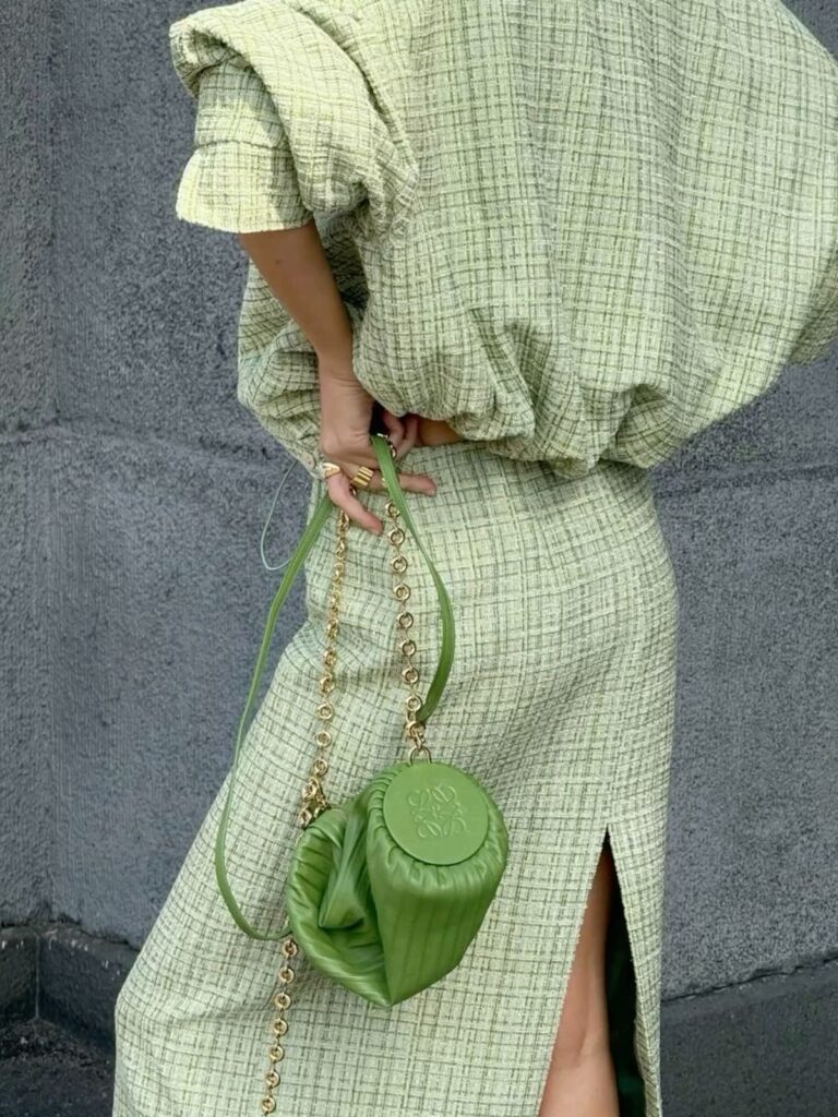 Comece experimentando o look monocromático, que é sinônimo de elegância instantânea. Aposte em peças no mesmo tom ou em variações suaves de verde menta, e finalize com acessórios neutros, como branco, bege ou prateado. O resultado? Um visual alinhado, moderno e com aquele toque sofisticado que parece ter saído direto do Pinterest.