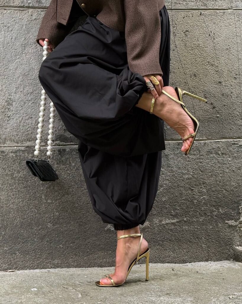 Esse modelo transforma qualquer outfit em um statement imediato. Mesmo com peças mais simples na parte de cima, o impacto visual já está garantido.