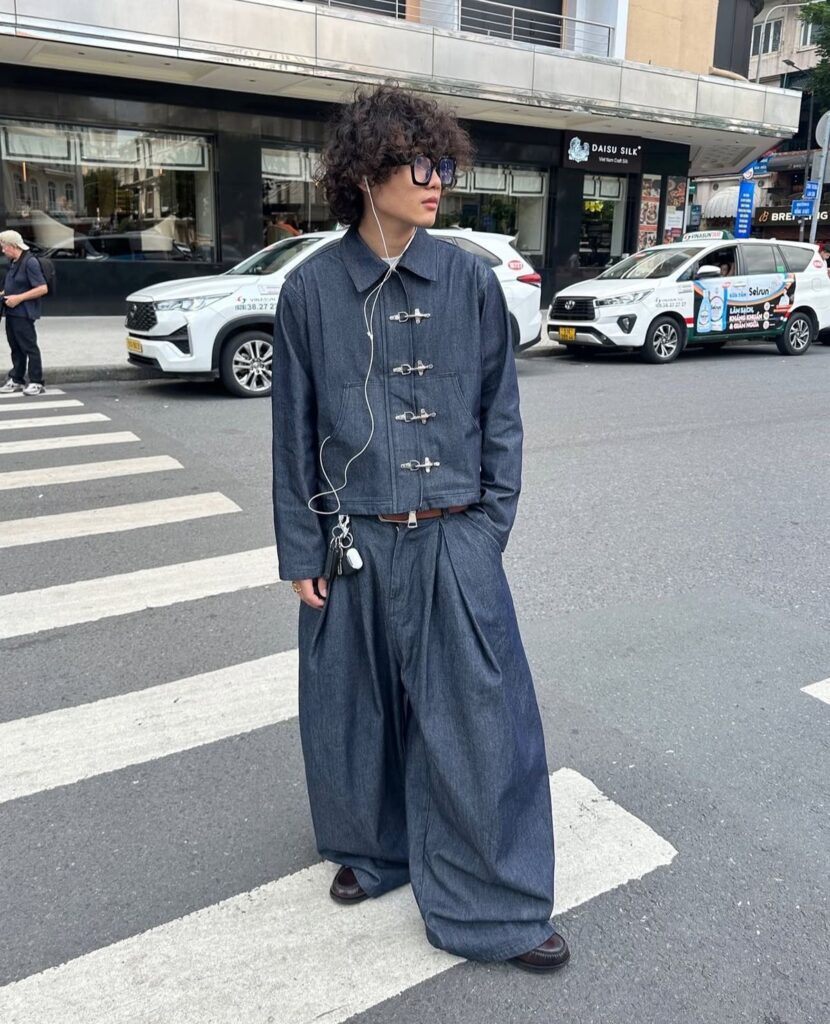Entre os destaques, a Tang Jacket surge como uma das apostas mais interessantes. Com uma estética levemente retrô e influência cultural marcante, ela traz um ar sofisticado e diferenciado ao visual. É o tipo de peça que, mesmo em composições simples, cria impacto imediato e demonstra cuidado na construção do look.