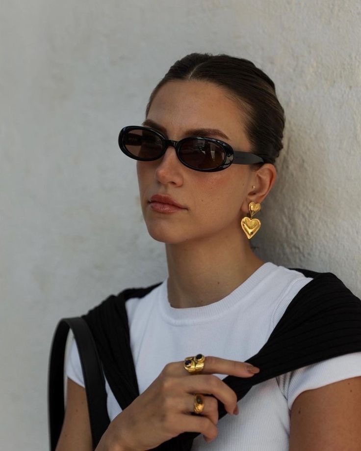 Entre os destaques, os modelos “small vintage 90’s” retornam com força total. Com lentes ovais e design minimalista, eles resgatam o charme retrô eternizado por Carolyn Bessette-Kennedy, trazendo aquele ar “effortless chic” que continua extremamente atual.