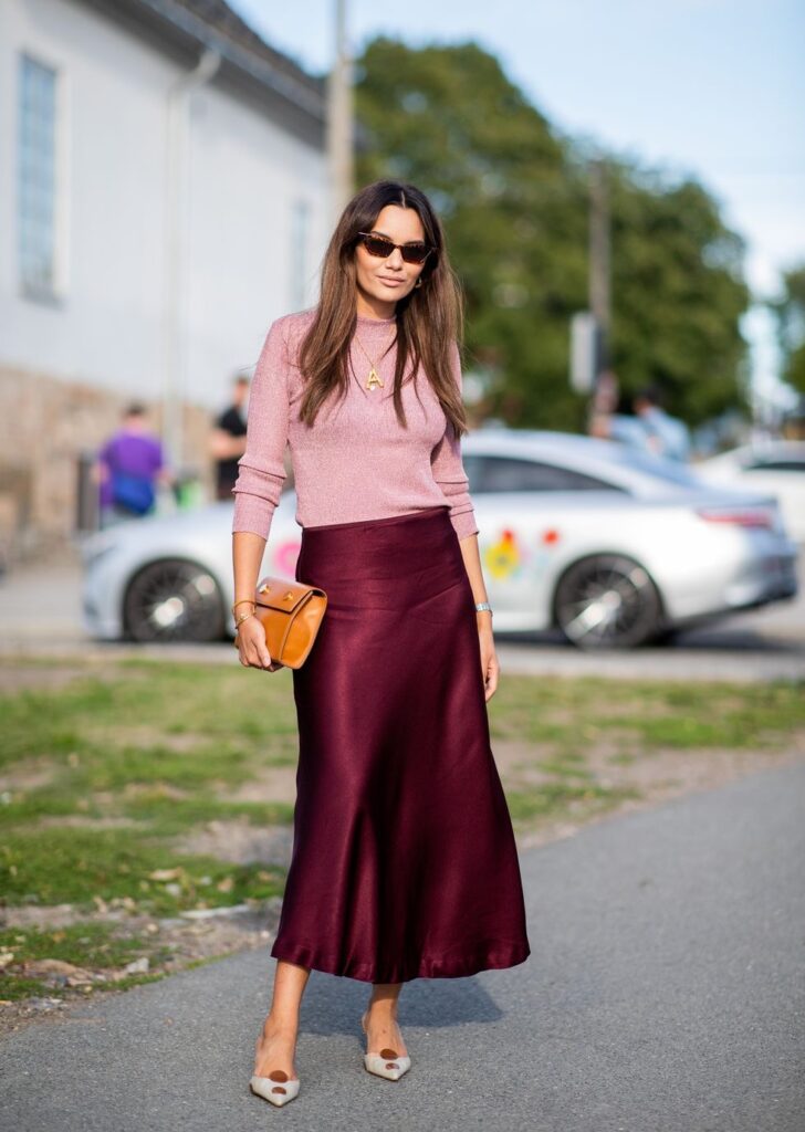 A saia de cetim é uma daquelas peças versáteis que conseguem transitar com facilidade entre diferentes estilos e ocasiões. O segredo para usá-la está menos na peça em si e mais na forma como ela é combinada, criando contrastes interessantes e atualizando o visual.