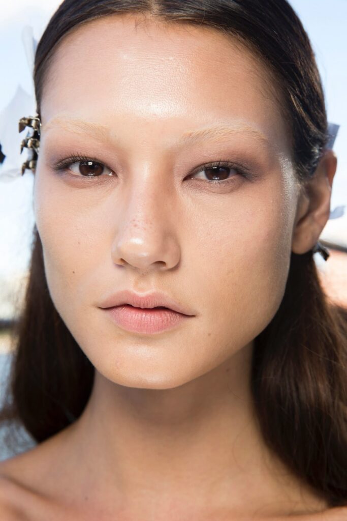 O boom atual tem muito a ver com o revival do Y2K e com a estética avant-garde que está dominando o universo fashion. Marcas como Givenchy, Balenciaga e Maison Margiela já levaram as sobrancelhas apagadas para seus desfiles, reforçando a vibe de beleza experimental.