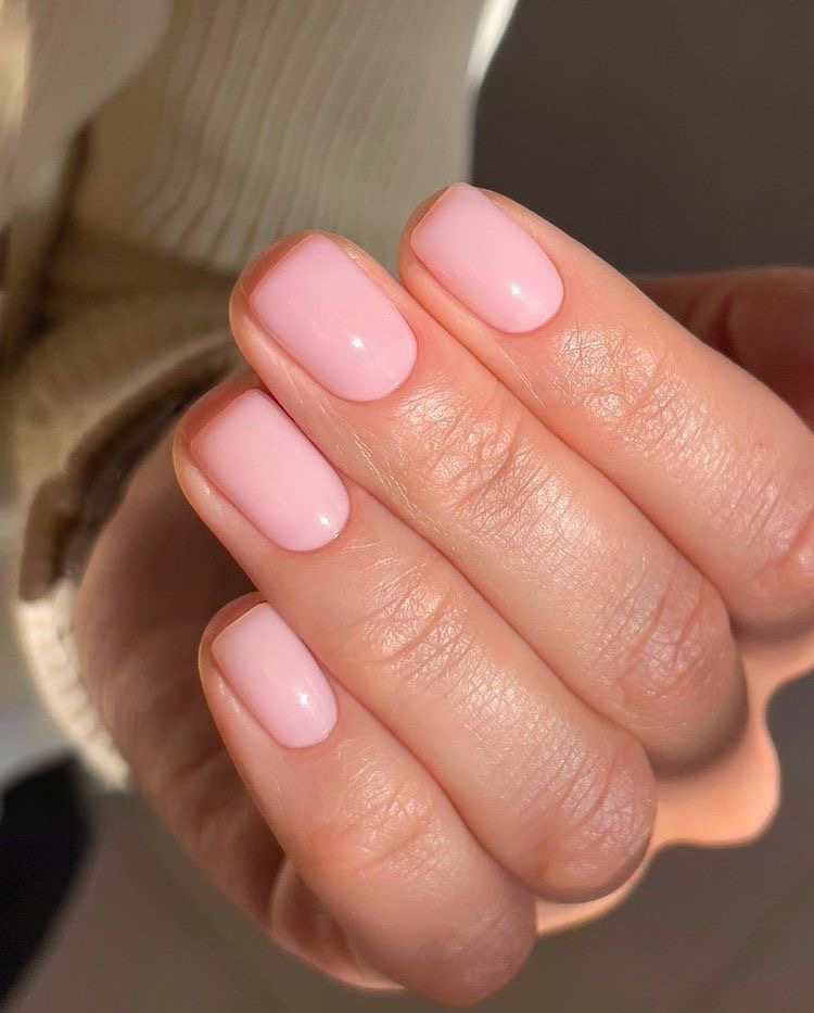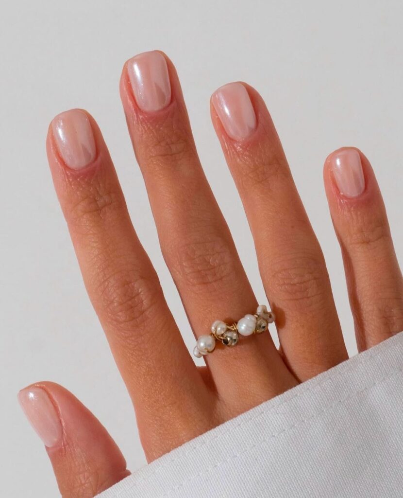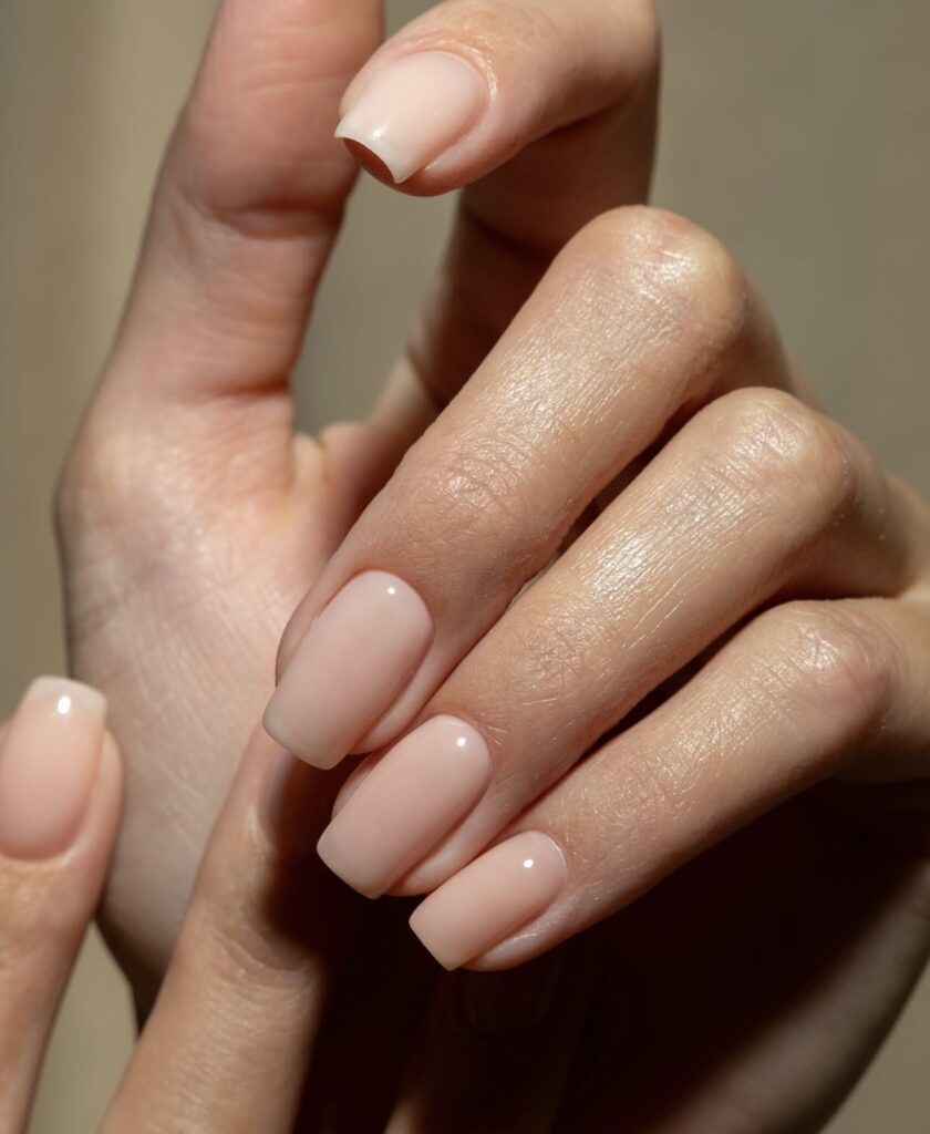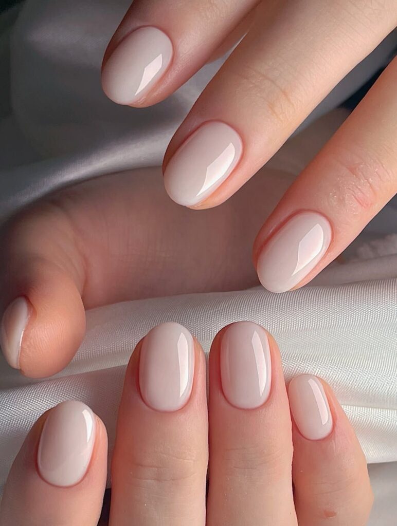 Com foco no natural, o acabamento é limpo, leitoso e altamente polido. Nada de nail arts elaboradas ou cores intensas. O protagonismo está na superfície perfeita e no brilho discreto.