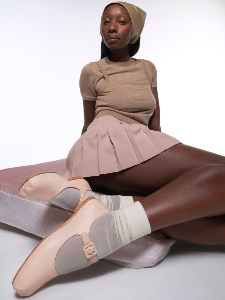 Se antes a meia-fina era discreta e invisível, agora ela pede destaque. Seja com sandálias delicadas, scarpins poderosos, sapatilhas românticas ou até mocassins chunky (aquele modelo robusto que deixa qualquer produção mais edgy), o resultado é sempre cool. É o tipo de detalhe que transforma um look simples em algo instantaneamente mais interessante.